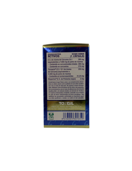 Cúrcuma 10.000 mg de Tongil es un complemento nutricional formulado para para ayudar a mejorar procesos inflamatorios y problemas digestivos.